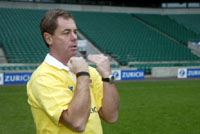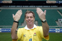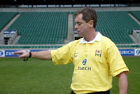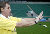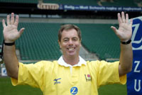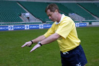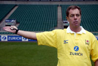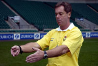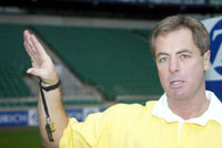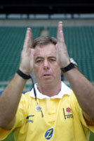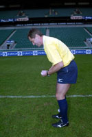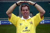"emergency exit here...here...and...here" - Dizzybird News item - Mr Lander poses at Twickenham in front of a stand full of all his friends. - Trev J "...And Neil Back was about here when I told him "If you kill the ball once more....." - Trev J 'You come any closer with that zoom and you're going to get some.' - KWC 'First I like it when they tie me up like this...' - Prof 'When I rule the universe you'll all have to salute me like this!' - Prof 'Now if I get the stance right, will I win the the Far Flung geezer competion?' - Richard 'The Geezer who was hurling abuse was this svelte' -The Bs 'In case of crowd or player abuse, the emergency exits are here, here, and here.' - KWC "... and the emergency exits are being pointed out now...." - WoW "...strike a pose..." - Prof 'It all starts very small...' - Prof 'I see no touchjudges' - AJB 'This might be the degree of my narrowmindedness' - Barquin Mad 'That's my naked Emu impersonation, now it's time for the elephant...' - Prof " I had to become a ref after being kicked out of emu college" - Tank '"Kark, kark..." that's the sound of the cockateil, now for the widgeon' - Prof 'Look you London Irish lot, this is what a try line looks like' - Prof "... remind me again, what does that white line signify ?" - WoW 'Lawrence, was kneeling down and sniffing it, I have no idea why' - Prof 'Look everybody, I’ve found the Golden Rivet', enter fellow chuff-chindit stage right - DavidC "That one's moved as well - does this always happen when Sale are in town?" - James 'Yes Iam guilty - please handcuff and take me away!' - DorothyH 'Fair enough, I have been masquerading as a referee for long enough, take me away officer' - Prof 'Then I crept up behind Ashotn Jones and gave him the wedgie of his life!" - Prof "dancing Steve young and sweet only seventeen oooohhhhh yeah!" - MichelleC '...and then he showed me at the next breakdown, 'cause he was on the wing then you know, and you really couldn't tell that he'd had the hair replacement therapy!' - KWC '1,2,3 ??? How many players are there in a scrum' - Rob Thomas The Macarena - Step 3. - KWC 'I upset him so much that he rammed my whistle this far up my ar*e' - BarQuin Mad International refs don't get paid that much, so Steve Lander adds to his income by appearing in ads like this as the face of "Mega-Orange Unrealistic Tanning Corp" - Viks 'I’ve trodden in myself!' - Prof 'I still like to practice, even though I haven't competitively Morris Danced for years.' - KWC 'Now which sock did I tuck that tube of preparation H down?' - Trev J 'Hello, I'm Darcy Bussell' - Prof 'Who said something about Spreaders?' - Prof '...and at half time we like to play leap frog.' - KWC 'And then the big boys made me stand like this and then got a hot crumpet and... that's when I left Charterhouse - I blubbed you see!' - Prof 'Bugger, I've got my watch strap caught on my sock' - Prof 'Well there isn't a test as such you just have to bend over like this then Ed Morrison inserts the 'Thunderer' and before you know it you're an international referee!' - Prof "Please sir, can I have some more" - OwenB 'An impersonation for you - the Moon Lander - geddit?' - Prof 'Slander prepares for kick-off between the hair dressers and interior design XVs' - BarQuin Mad 'Yes, I'd say that the karate training has helped my confidence on the pitch. Watch! Watch! Watch!' - KWC 'I think that's my arse, no hang on it might be my elbow - now I'm confused... penalty to someone' - Prof 'I went for a trim at a barber’s on the Whitton Rd and was surprised when he suggested I take it off here' - BarQuin Mad 'My thumb!!! One of those Gloucester forwards bit off my thumb!!' - Prof It's so hard to keep this smile from my face, losing control, I'm all over the place. Clowns to left of me, jokers to the right, here am I stuck in the middle with you. - WoW 'there there Tofty, I'll stop the big boys kicking that nasty ball to you' - AJB 'hands up all those who thinks Neil Backs a good guy' - BarQuin Mad Lander cuddles his only friend in the world - Viks 'Come on then, you wouldn't dare punch this beautiful face' - Prof 'And a big hand to me... yes, thankyou, thankyou!' - KWC 'The safest pair of hands in the business' - WoW 'I’ve only got hands this size, so I can’t be the complete w*****r that you think I am' - BarQuin Mad 'Cup'a'tea Mr Herriot?' - Prof 'Second rows bind like this - see I do know something about rugby!' - Prof 'Spot the invisible sheep' - DaveC After being told in numerous games by Jonno and Dawson on numerous occasions what a great bloke he is, how well "a bit of colour suits him" and how he could do just about anything he wanted to, Lander enters the World's Strongest Man contest. - Viks 'I'm dead tough, me' - Prof 'With my incredible brain power I can levitate my whistle!' - Prof 'See - the old moves are still there. I dont have the bells anymore though.' - KWC 'Strong like bull, grrrrr!' - Prof 'My body is my tool' - Prof 'Stop! Everybody look at me, I'm important! - Prof 'I've got a new whistle - bow before me mortals - BWAHAHAHAHA!' - Prof "Zieg heil....nein????" - Dizzybird "Now comes with realistic karate chop action!" - Battering Ram Winger 'Oh damn, I think I've just followed through' - Prof 'This isn't in the coaching manual, it just reminds me of my time in the Household Cavalry.' - TrevJ 'I never believed he'd actually shove my whistle where he said he would. I was walking like this for a week afterwards'. - Trev 'I think I am going to fart!!!' - Lex 'And he lept over the line like this, it was the best landiing I ever saw' - Prof 'and I c****d up the lineout decicision at the TBC final............just like that!' - AJB 'Can I go off, those Quins fans are being nasty to me' - Prof 'I think you'll find I'm the most important person on the pitch' - Prof 'This is how many decisions Im going to give Quins' way this season !' - Dunc Send your suggested captions to theprofessor@diamondgeezers.org.uk . |
