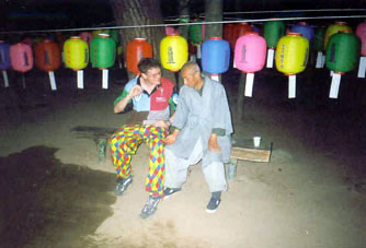 The linear distance from the Stoop is very good, David is wearing the trews and a CSF shirt . He gets extra points for the coloured lanterns that make his trews look positively dull! Extra points are also gained for the response to the trews of the old monk. If there had been more geezering activities going on he would have got more points but they may have been a tad inappropriate. The committee of 57 old geezers awards David a huge 635 points.