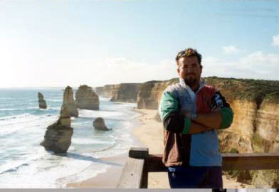 The image: Here we see Tom on the Great Ocean Road in Victoria, Australia with the Twelve Apostles in the background. |