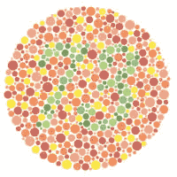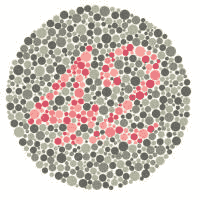 You should be able to see numbers within these coloured discs of dots, if you can't see them you should consult your doctor because you might be colourblind but at least seeing the DG trews shouldn't cause you too many problems: |